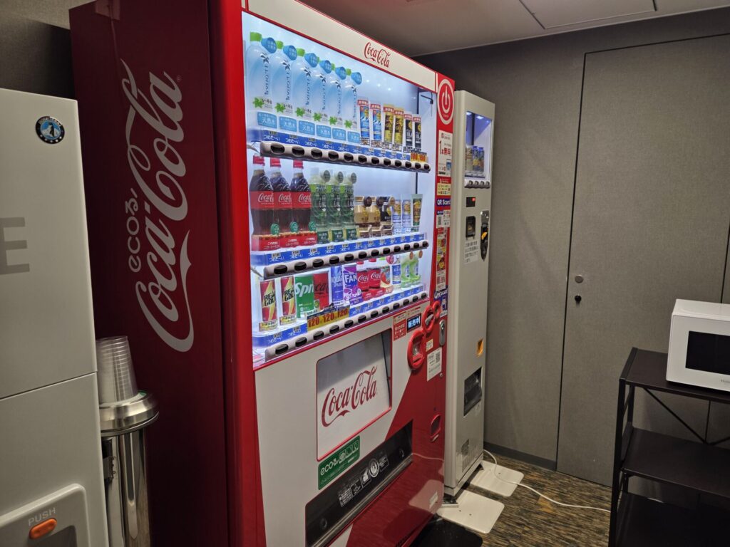 なおエレベーターホールの近くには飲み物の自動販売機がありました。お酒の自販機もありましたよ。