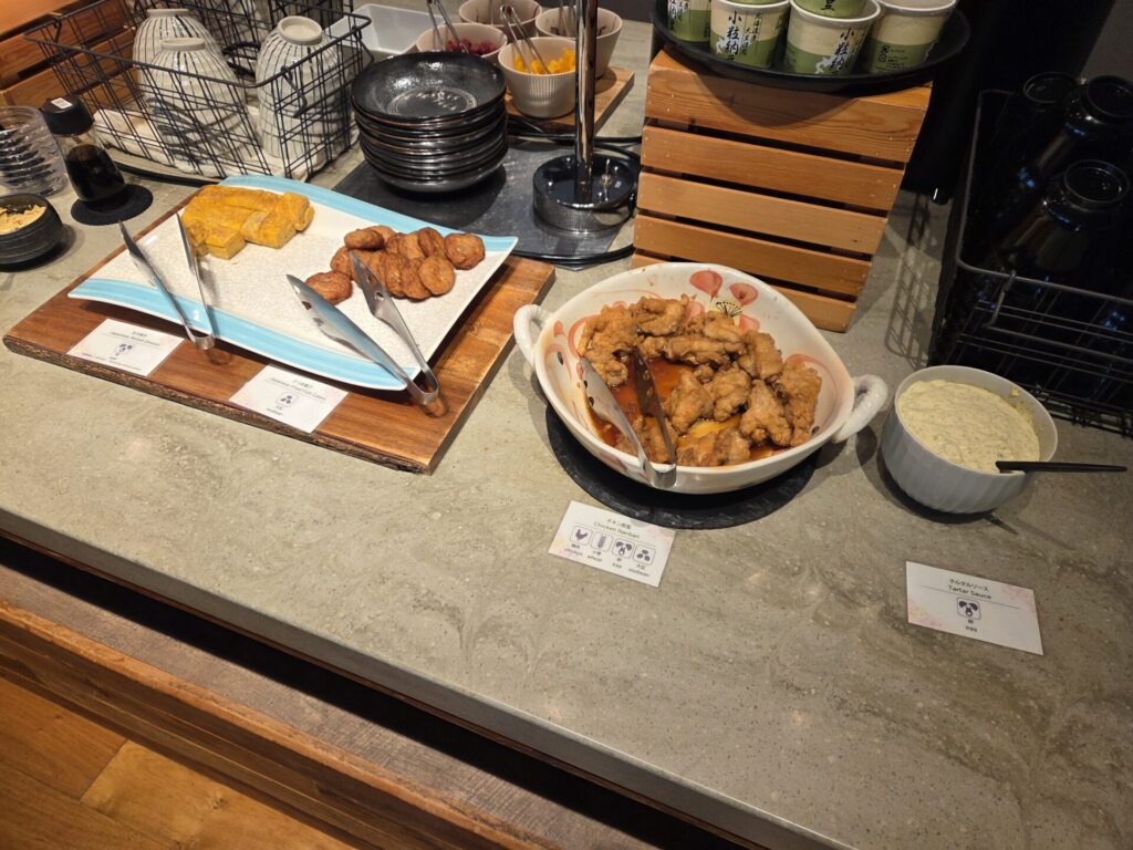 チキン南蛮があるのが宮崎のホテルらしいポイント。甘いタレがたまりません。タルタルソースも好きなだけかけられます。