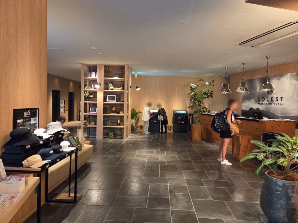ロビーはこんな感じで木を活かしたモダンな空間となっています。正面奥にある機械でのチェックインでしたが、スタッフの方も手伝ってくれたり、周辺の飲食店の情報など色々教えていただきました。飲食店含む観光マップを貰えたのもありがたかったです。